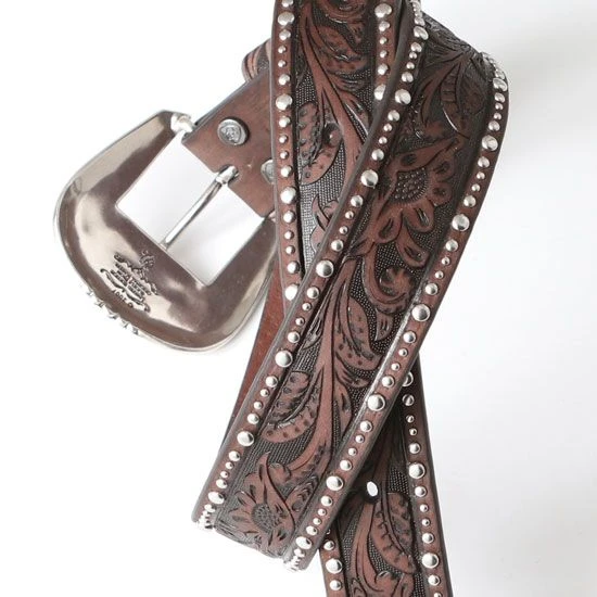 This floral tooled belt by Ariat has a special edition buckle from Original Master
