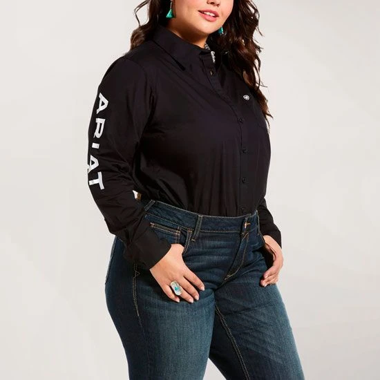The perfect classic black top for all your needs. Not only that but show your love and support for your favorite brand in the Ariat Team Kirby Black Top.