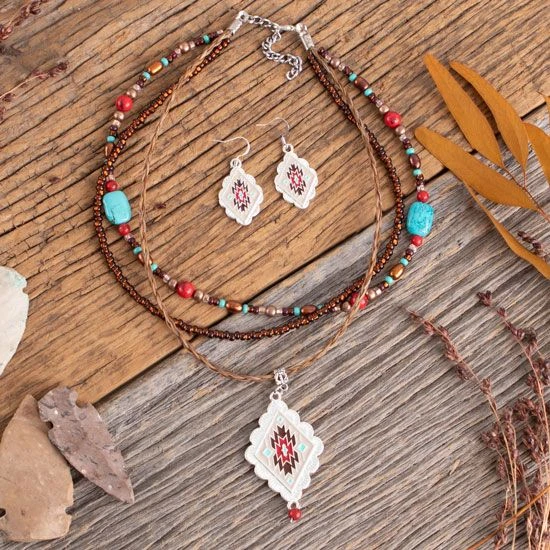 Add a touch of red to any outfit with the Beige And Red Aztec Earring!
