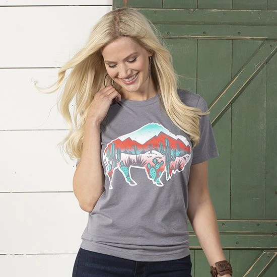 Show your love for the west in the Bixby Bison Tee. This comfy tee will be a great addition to any wardrobe.