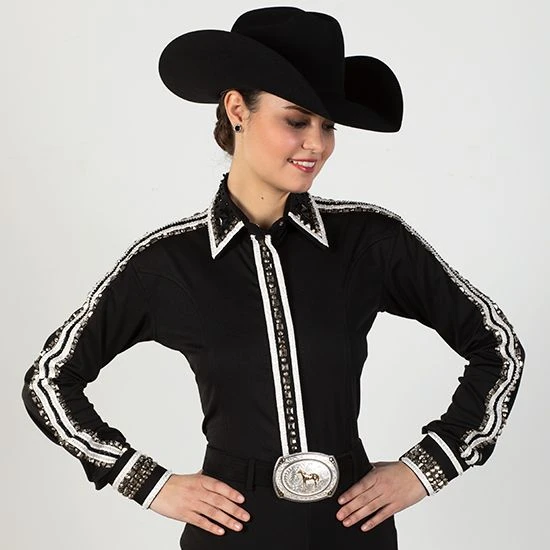 | Product Name | Black and White Rhinestone Zip Front Blouse |