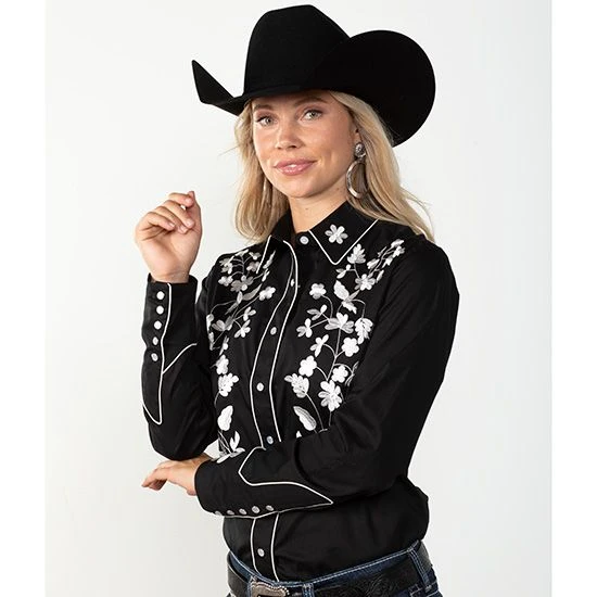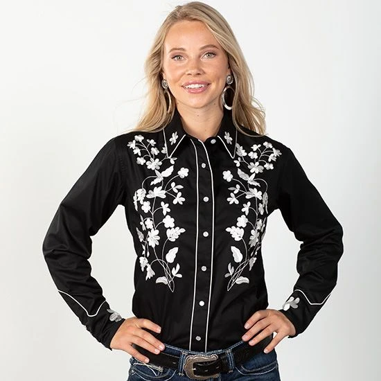 Looking for that cool, classic, western style? The Rod’s Exclusive Black & White Embrodiered Floral Top is perfect for you! Check out item 11036 for the same shirt but with a pop of pink!