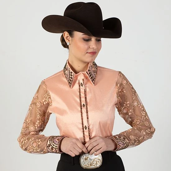 This Blush Embellished Sheer Sleeve Show Blouse provides a feminine look that will keep you cool even on the hottest days.