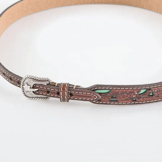 Add a splash of color to any western hat with this Brown & Turquoise Floral Tooled Hat Band!