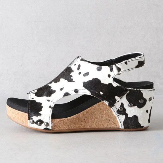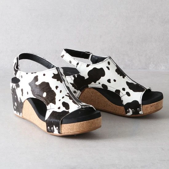 Look no further! Corkys Cow Print Pasture Sandals are great for concerts, fair season, or just a night out.