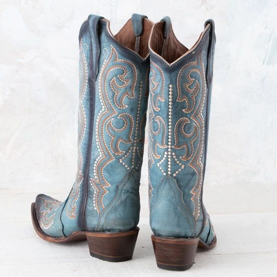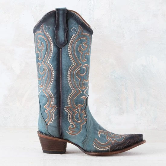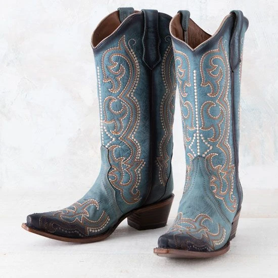 The Circle G Blue Jean Embroidery Boot has such a fun retro vibe! The beautiful all over embroidery and buckstitch detail will turn heads anywhere you go.