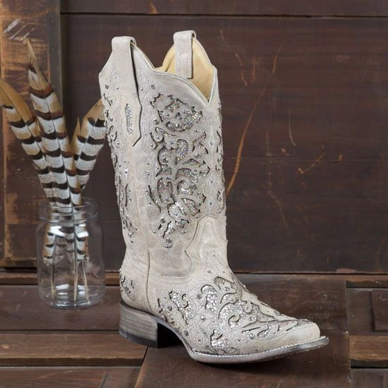 | Product Name | Corral White Glitter Inlay and Crystals Square Toe |