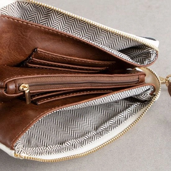 - Two slip pockets on the inside with six cardholders
