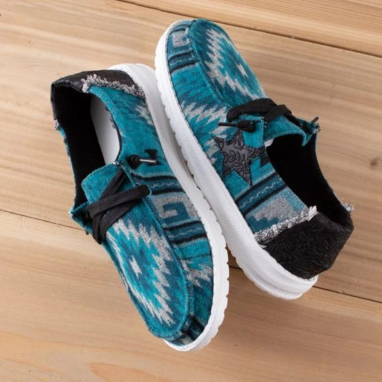 Add some southwestern flair to your outfit! These Turquoise Saxtons will be a new favorite in your footwear collection.