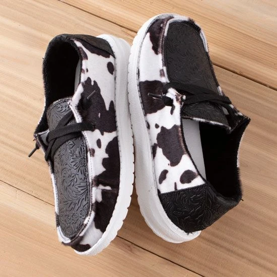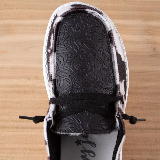 Add some western flair to your casual footwear collection with these Black and White Tucker shoes from Gypsy Jazz!