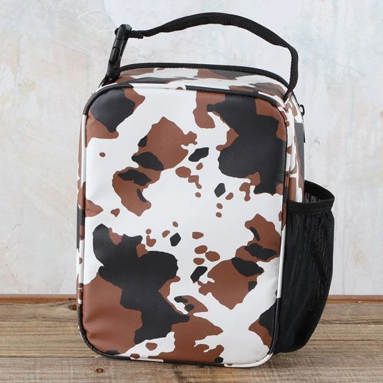 Bring some western to-go with this charming cow hide print lunch bag!