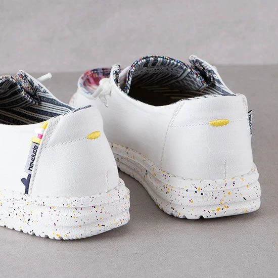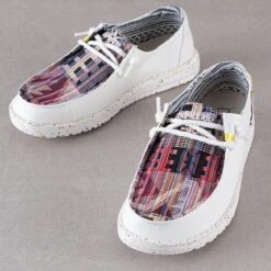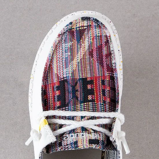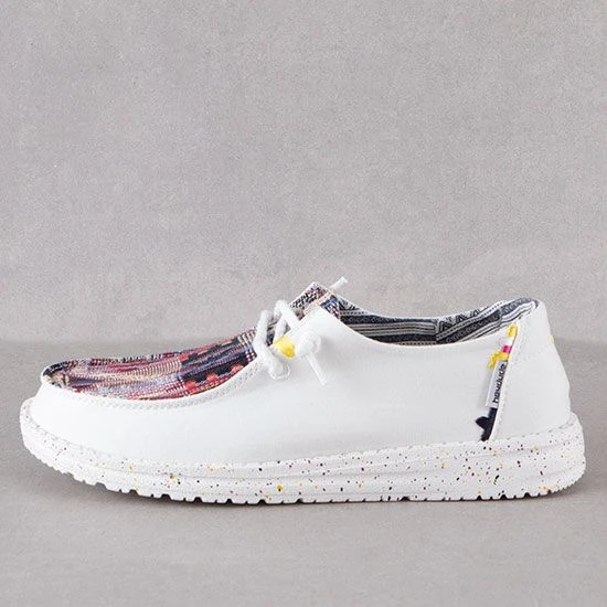 The iconic moc meets washed materials, embroidery and hand-stitched details together in the Hey Dude Wendy Boho Distressed Azca shoes. The Boho collection features the easy-on system, cotton laces, and an ultralight outsole for comfort.