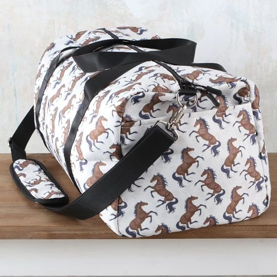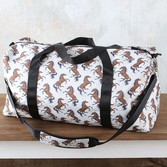 The Lila Beige Horse Print Duffle Bag is a great bag for those weekend trips or overnight in the camper. With the catchy running horse print it’s a great choice for any cowgirl.