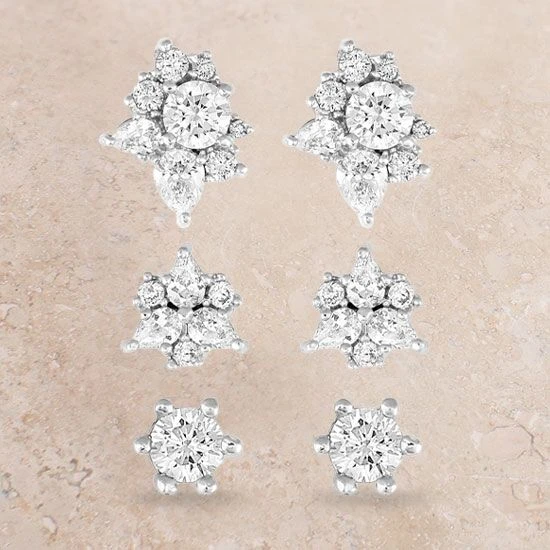 - Second set is three teardrop shaped cubic zirconia crystals with small round crystals