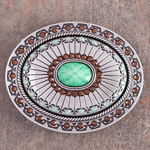 | Product Name | Oval Buckle With Turquoise and Brown Stone Details |