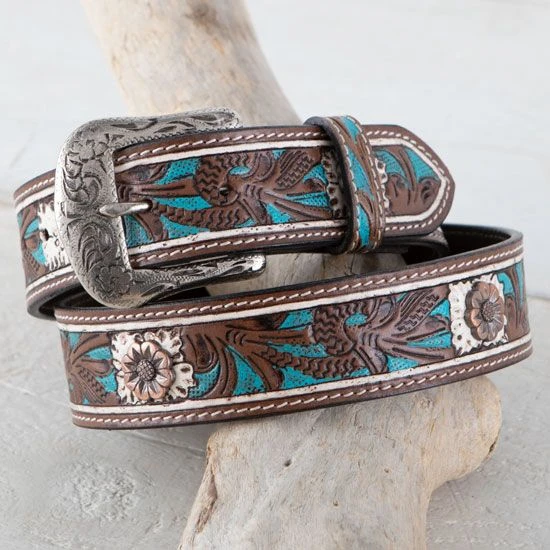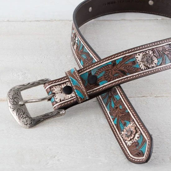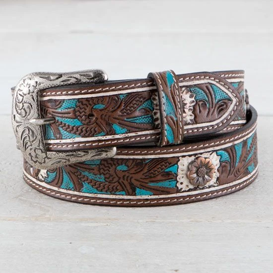 The Roper Blue and Cream Floral Belt is the perfect belt to add a touch of color to any outfit! Pair with your favorite jeans and boots for the perfect look!