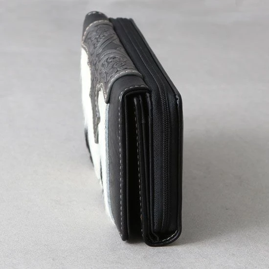 A new wallet that will hold everything you need the Salt And Pepper Cowhide Wallet features a hair-on hide front that is going to show off your western side.