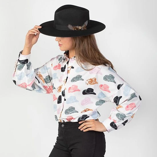 Need a new shirt for in the show pen? The Sea Of Cowboy Hats Top would be a stylish top for any occasion!