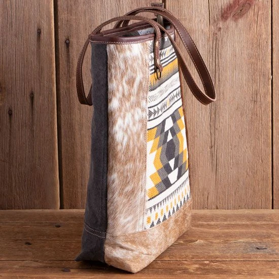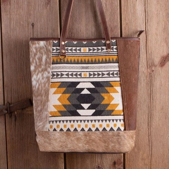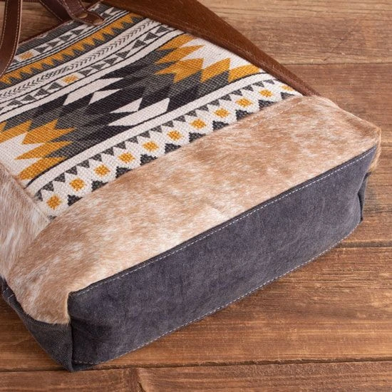 - Aztec and hair on design throughout the front of the tote