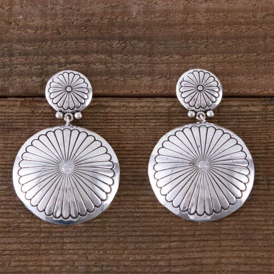 The Silver Round Double Concho Earrings are the perfect way to dress up any outfit.