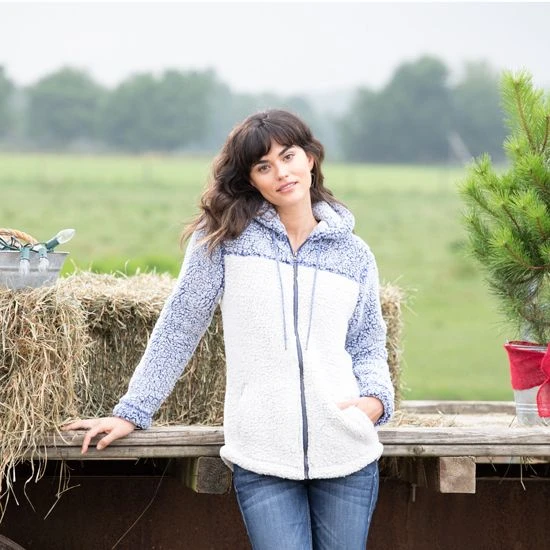 The cream and blue of the Snowy Full Zip make it the perfect color palette for jeans!