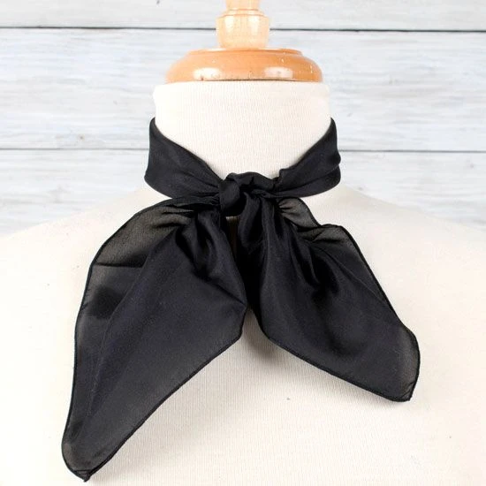 Add interest to any solid colored show shirt with this classic solid black silk scarf!