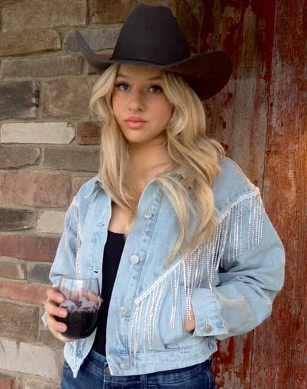 Oh, they will know who the trouble is after you grab the There’s Your Trouble Jacket! Check out or other rhinestone inspired styles!