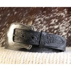 This black floral embossed belt by Tony Lama is stylish enough to wear with your best dress or with your everyday jeans.