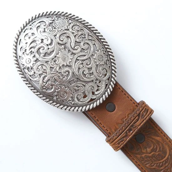Add classic western elegance to any outfit by wearing this cut out belt with a pierced antique silver finish buckle!