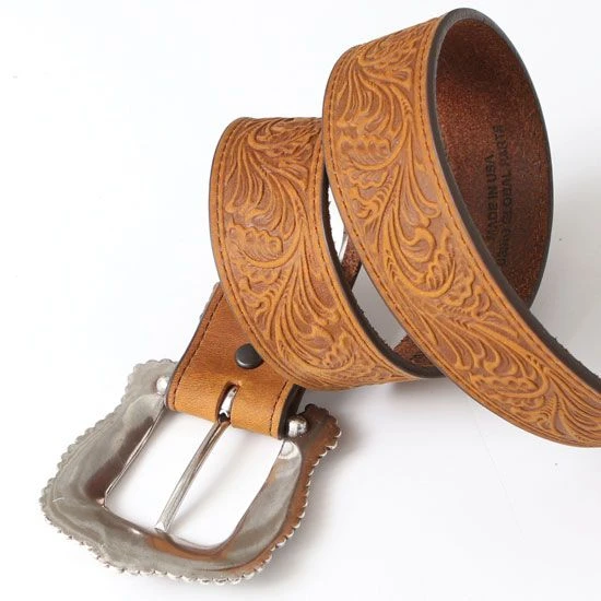 Ladies’ brown floral tooled western top grain leather belt MADE IN USA