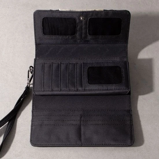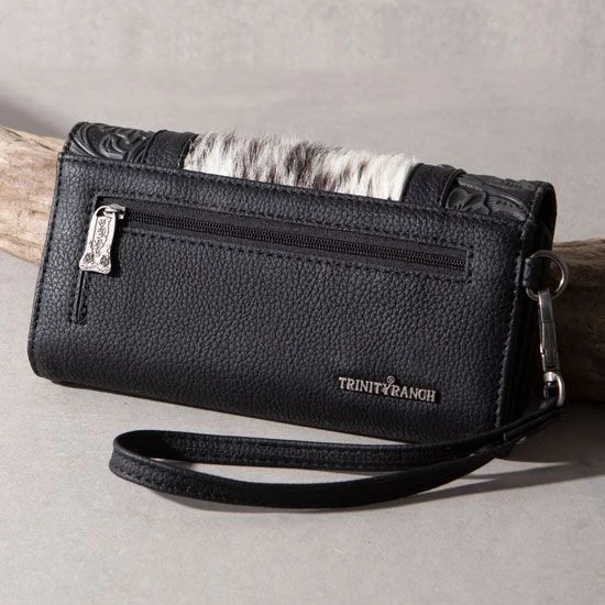 Pair the Trinity Ranch Black Cowhide Floral Tooled Wallet with any outfit for the perfect on the go wallet, that converts into a wristlet!