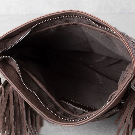 | Product Name | Trinity Ranch Brown Floral Tooled Cowhide Crossbody |