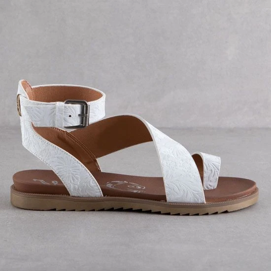 The white floral embossing on these Very G Steffy Sandals will add elegant Western touch to any outfit this summer.
