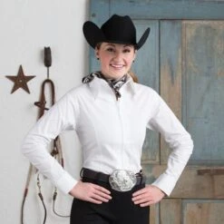 The full front and cuff YKK zip gives this show blouse a clean elegant look.